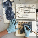 Six weeks in, the busy work of unpacking and organizing the studio has reached a crescendo, as evidenced by the video above. To be fair, half that mess on the studio table was remnants from the Mark-Making and Rust mini-workshop I taught in my online membership group last week. But it’s been filled and cleared again many times over—waves of supplies and stuff spread out, organized, put away. Rinse and repeat.